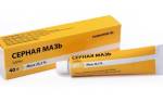 - Серная мазь. Имеет выраженное противопаразитное действие, оказывает антисептическое действие за счет взаимодействия активного компонента (серы) с органическими веществами, образовывая пентатионовую кислоту и сульфиды. Помимо этого серная мазь имеет антимикотическое действие;